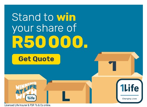 Eba monyetleng wa ho hapa karolo ya R50 000 le mpho ya bonus,ha o fumana mohala wa ho bapala Winning at Life le 1Life Insurance.