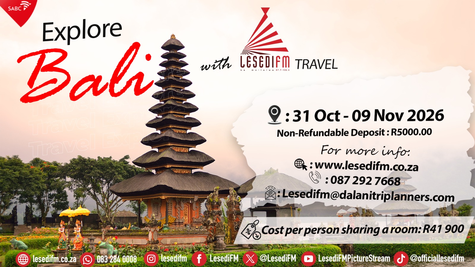 “Lesedi FM is taking you to paradise! Are you ready to pack your bags and join us in Bali, Indonesia?
